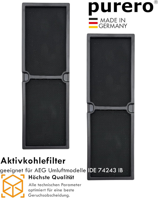 purero® Aktivkohlefilter/Keramikfilter -Ersatz für AEG Kohlefilter 4055550331 (2 St.)- Passend für AEG Induktionskochfeld Modell IDE 74243 IB - Serie 942150896 xx - Made in Germany